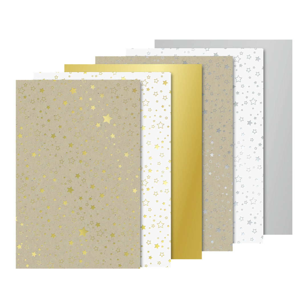 6 motivos en cada uno de los 2 colores (oro, plata) con acabado de alto brillo